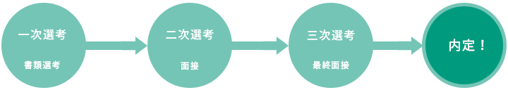 - 筆記試験(一般常識、適性、作文)、面接